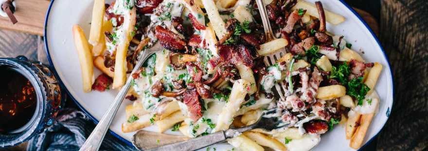I know, what could be better that a steaming plate of fries, gravy and cheese curd? Fries, gravy, cheese curd and bacon, that’s what! Throw in some fresh shallots, chilli, and a splash of roasted bone marrow and duck gravy, and we turn this popular French-Canadian dish into a something sublime.
